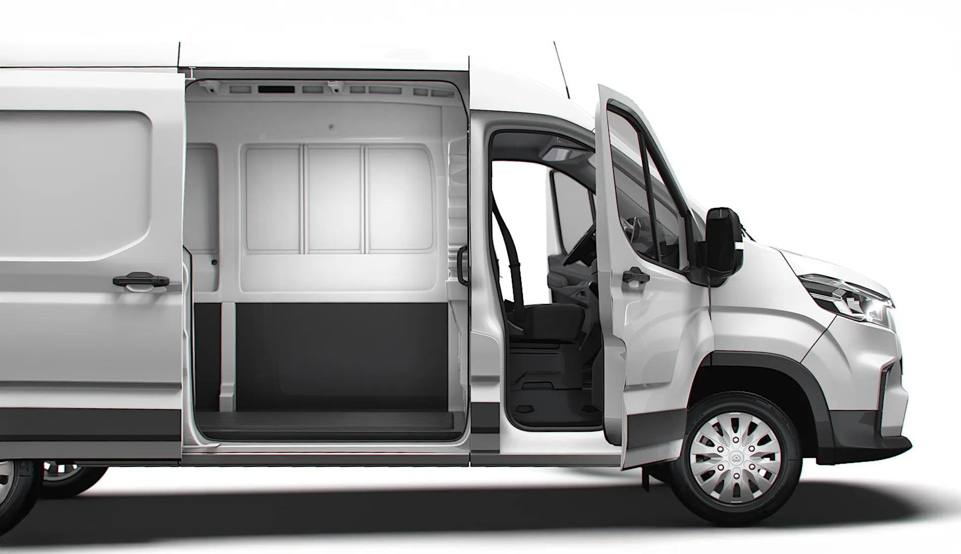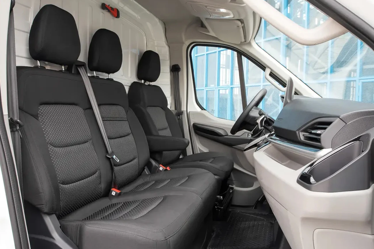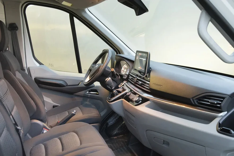 Deliver 9’un geniş sürgülü yan kapısı ve 180° açılan arka kapıları yük alanına tam erişim sağlar. Düşük yükleme eşiği, düz–kaymaz zemin ve bağlama halkaları paletli yükleri hızlı ve güvenli şekilde sabitlemenize yardımcı olur. LED iç aydınlatma net görüş sunarken, çelik ara bölme operasyon sırasında kabini güvenli tutar.